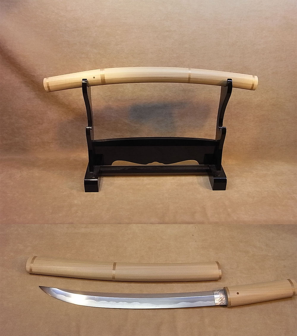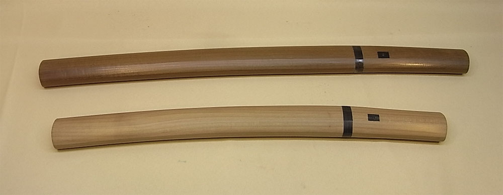 ハバキの無い刀身や、刃区が減ってハバキを造れない刀身でも写真の様に共ハバキで制作可能です。